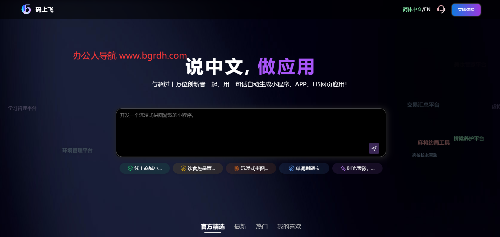 码上飞(CodeFlying)是一个基于AI技术的智能开发平台,旨在通过自然语言描述快速生成完整应用程序,无需编程基础。用户只需输入需求,AI即可自动生成端到端的应用程序,包括前后端代码、数据库及源代码下载等。该平台支持多种应用场景,如电商、教育、企业内部管理等,适用于个人开发者、学生及中小企业。
